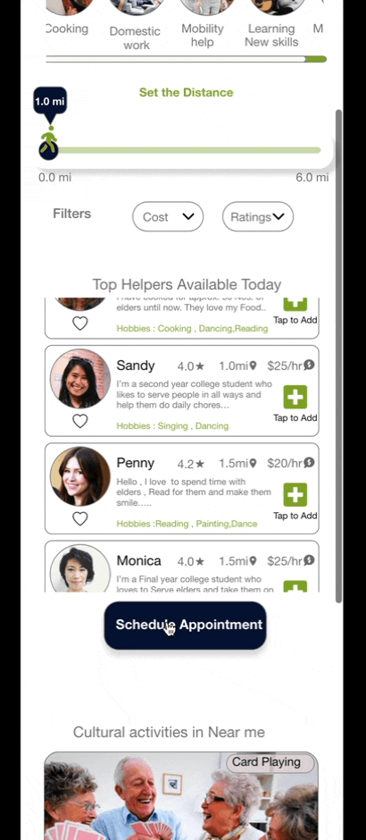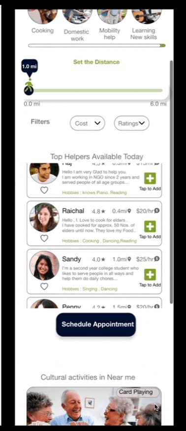 To prepare for usability testing, I created a low-fidelity prototype that connected the user flow of Scheduling the appointment for the Helpers